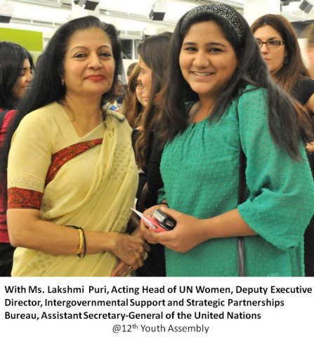 She considers it a matter of prestige for her to attend the Youth Assembly 2013, which spanned 3 days at United Nations and was graced by several leading personalaities and over 1,300 youth delegates from across the globe. As a delegate and volunteer leader, she engaged with youth from various countries such as Romania, Nigeria, Sri Lanka, USA and shared the work that is being done by her organization SynergY and by youth in UAE.